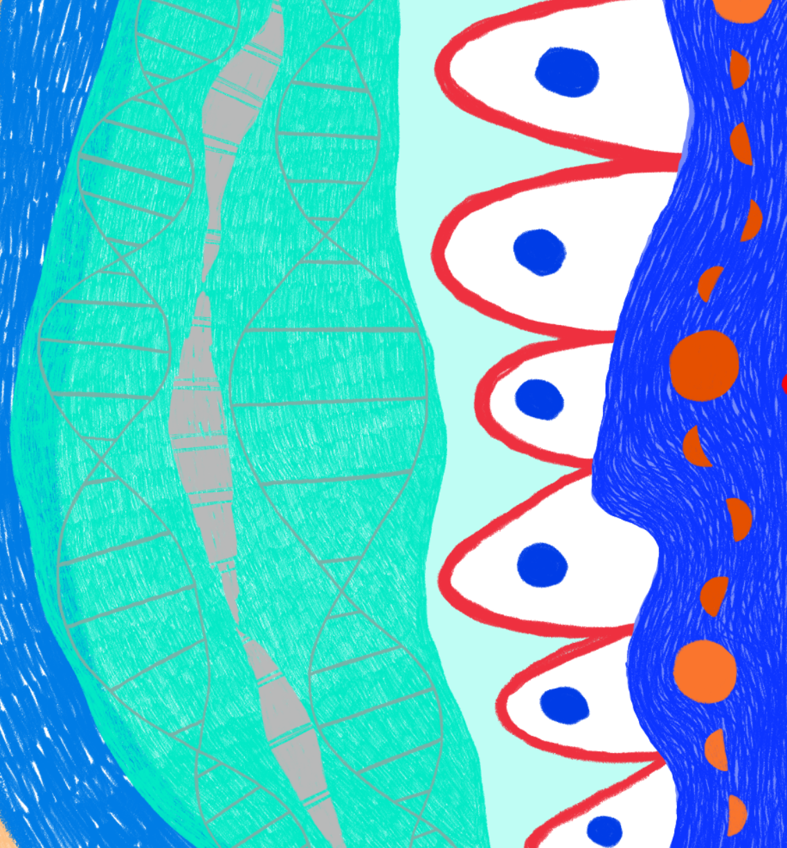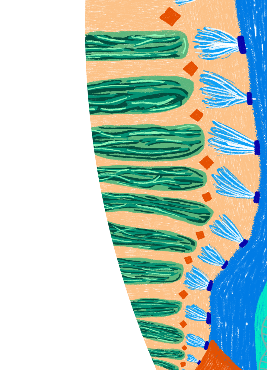 This piece is autobiographical, primarily examining emotions and psychosomatic sensations. The repetition of patterns going up and down the marble not only serves a design purpose, but a metaphorical one as well; there are things, oftentime fears, that crop up in life and disrupt its continuum over and over again until they get figured out. And still, a love of beautiful colors and bright patterns, and ultimately hope for the future, is sprinkled throughout this marble.